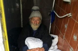 Drama unui pensionar. Are 11 copii mari, dar a ajuns să doarmă într-o toaletă din centrul orașului. „Nu ține la mine niciunul. Soția îmi…
